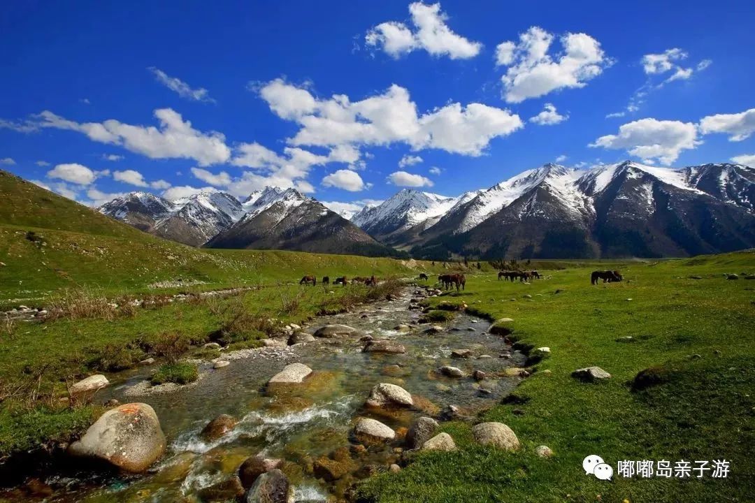 行至天山脚下,更是别有一番风味,山峦叠嶂,白雪皑皑,与蓝天白云相映成趣,山间溪流潺潺,宛如珍珠滚落玉盘,登至山顶,俯瞰群山,心中涌起一股豪情壮志。